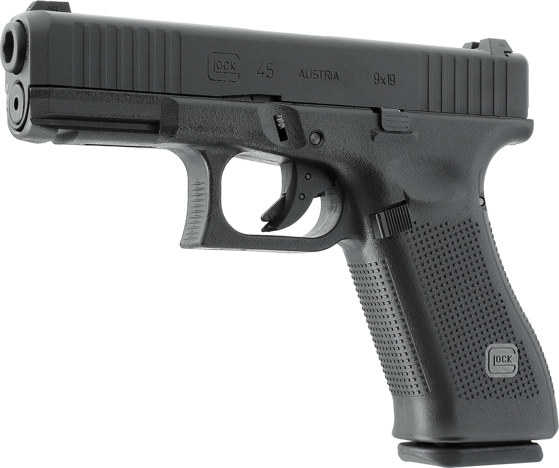 G19X trifft auf Gen5 – Die GLOCK 45 ist das schwarze Modell einer Crossover-Pistole mit dem Fullsize-Griffstück der G17 und dem kompakten Schlitten der G19.
